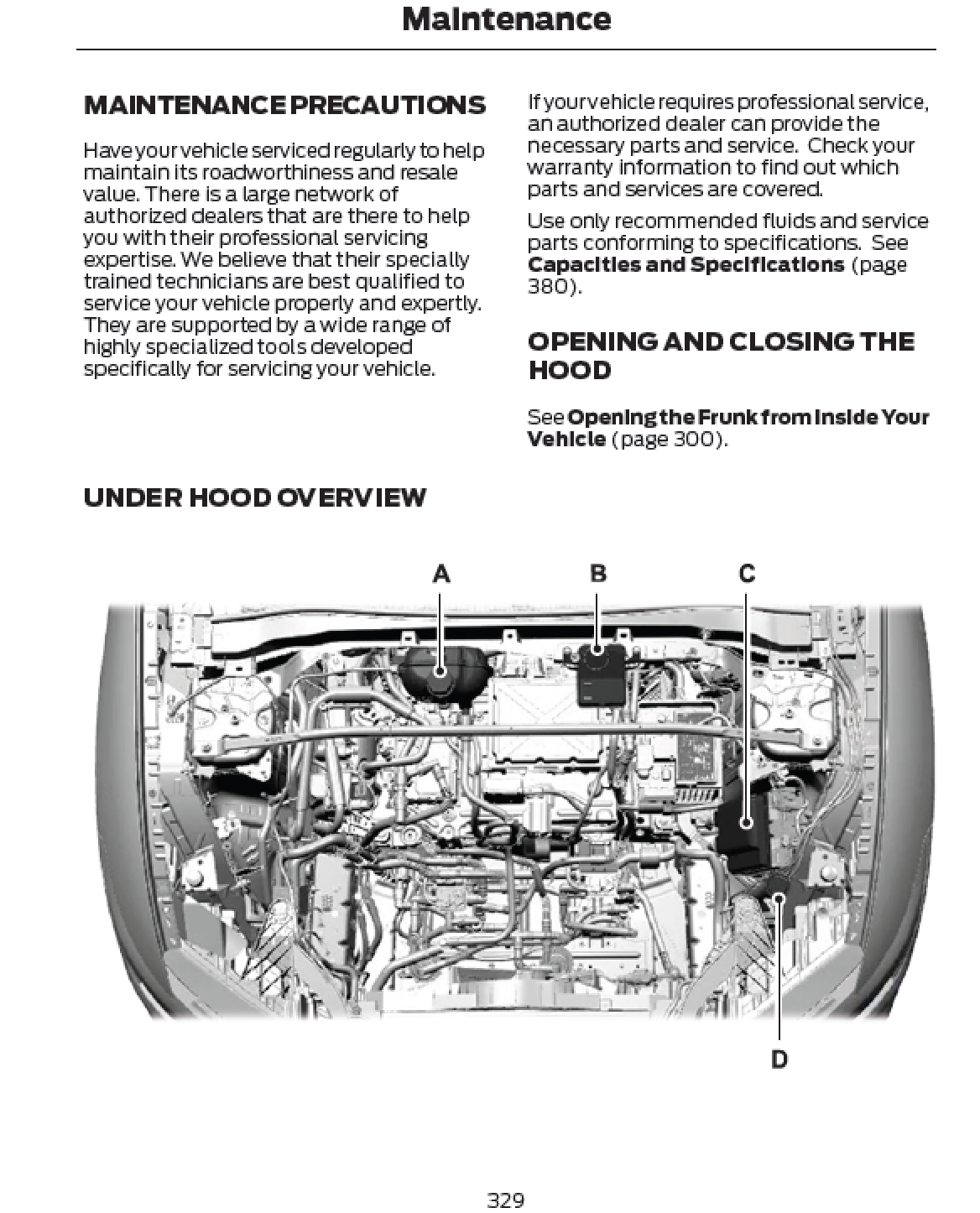Care & Maintenance: Scheduled service intervals, fluid types, tire care, and general upkeep procedures.
