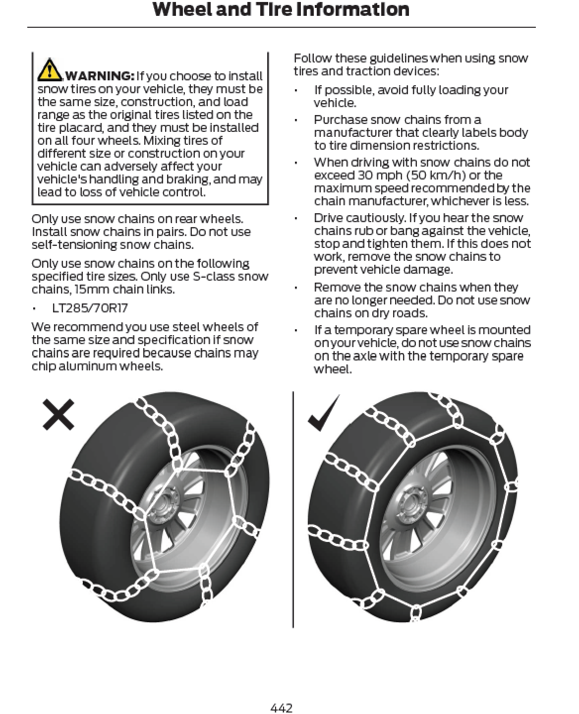 Care & Maintenance: Scheduled service intervals, fluid types, tire care, and general upkeep procedures.