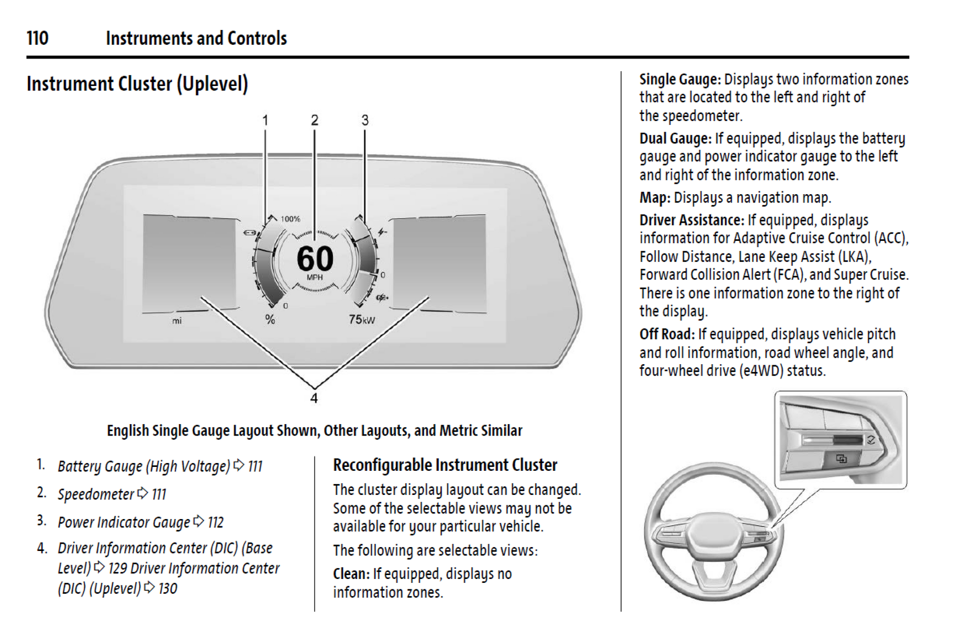 Gauge cluster and customizable display options
